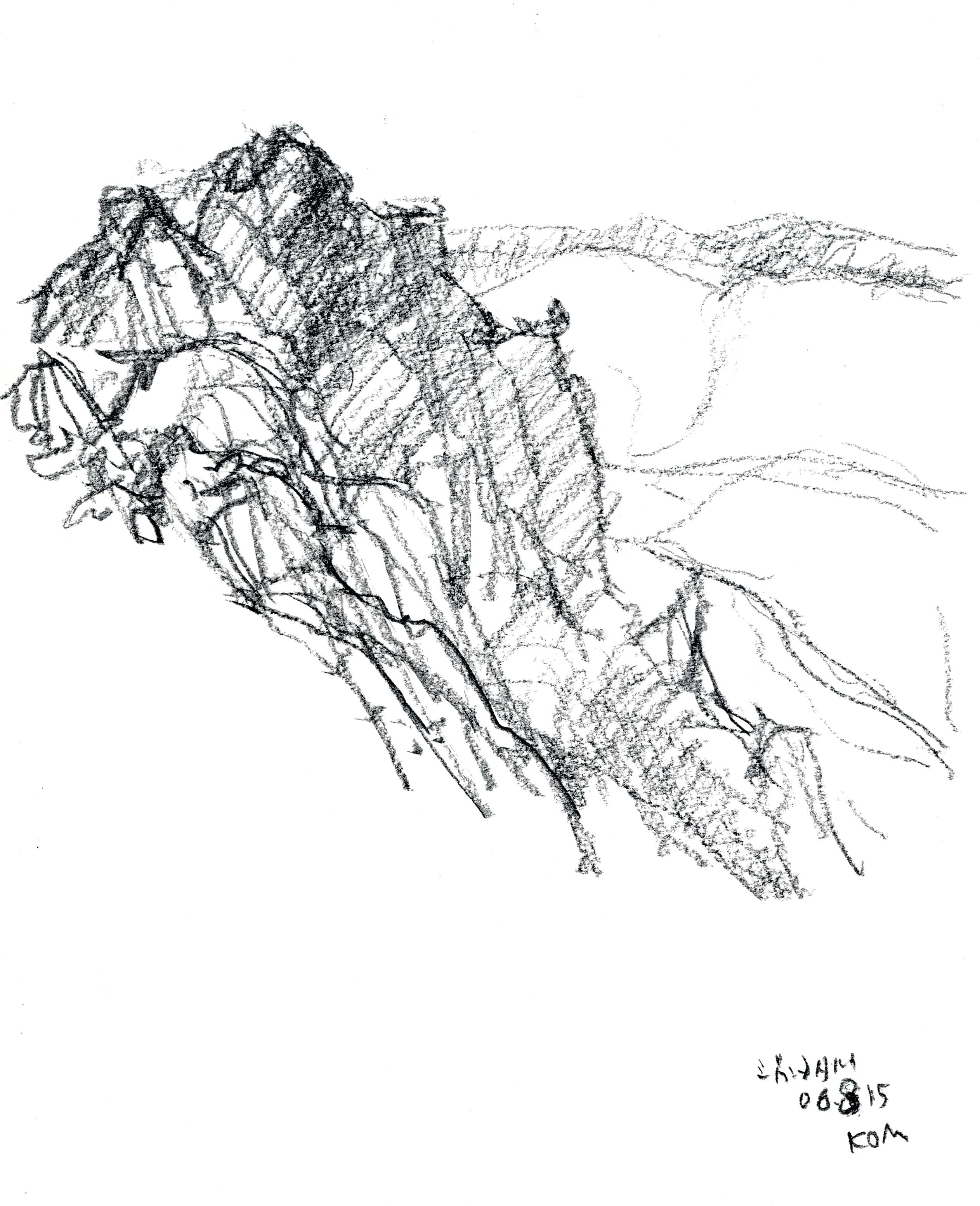 <南稜ル-トから吊尾根 コンテ鉛筆F4>