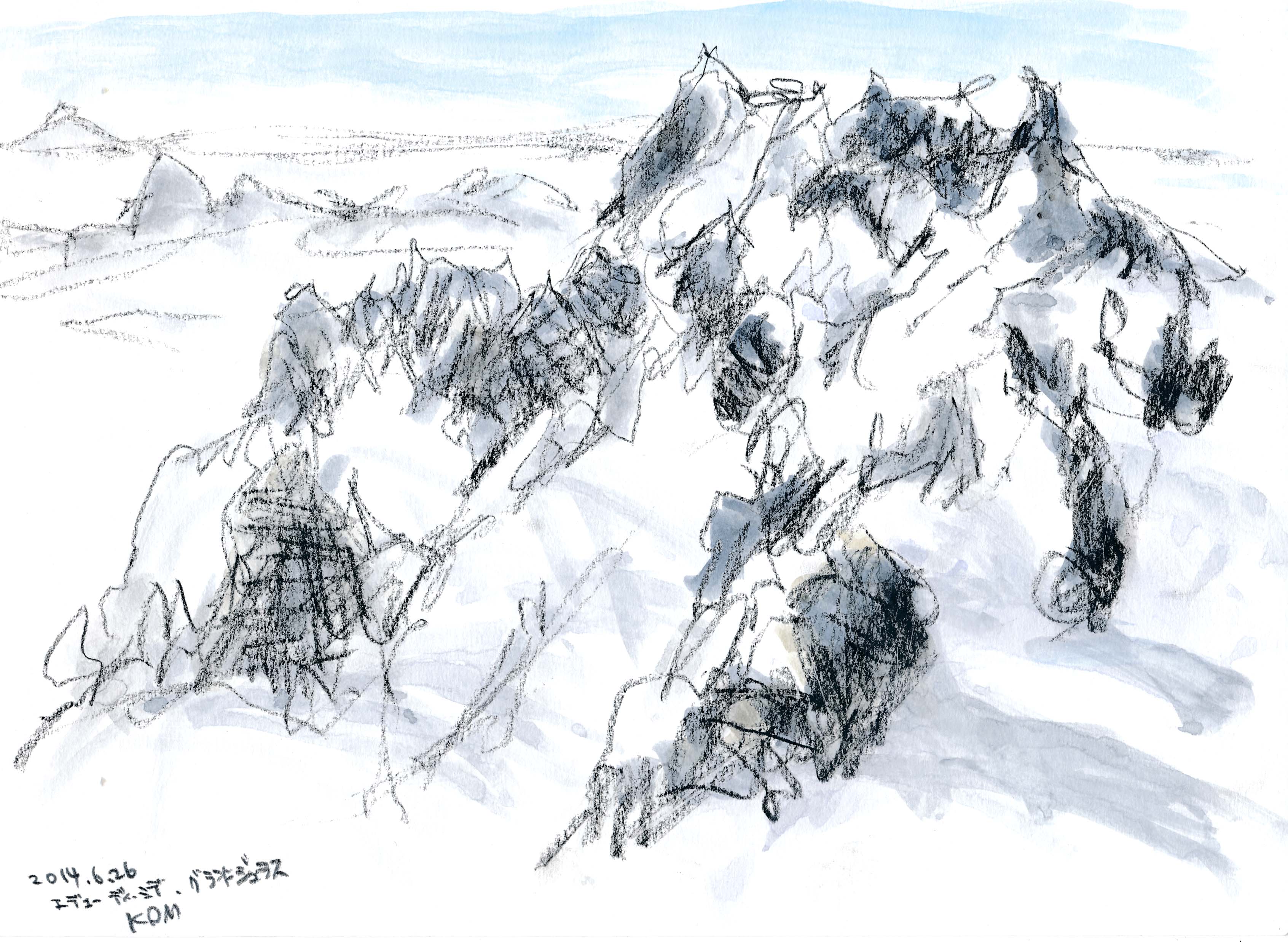 <エギ-ユ・デュ・ミディよりグラン・モンテ展望 コンテ鉛筆A4>