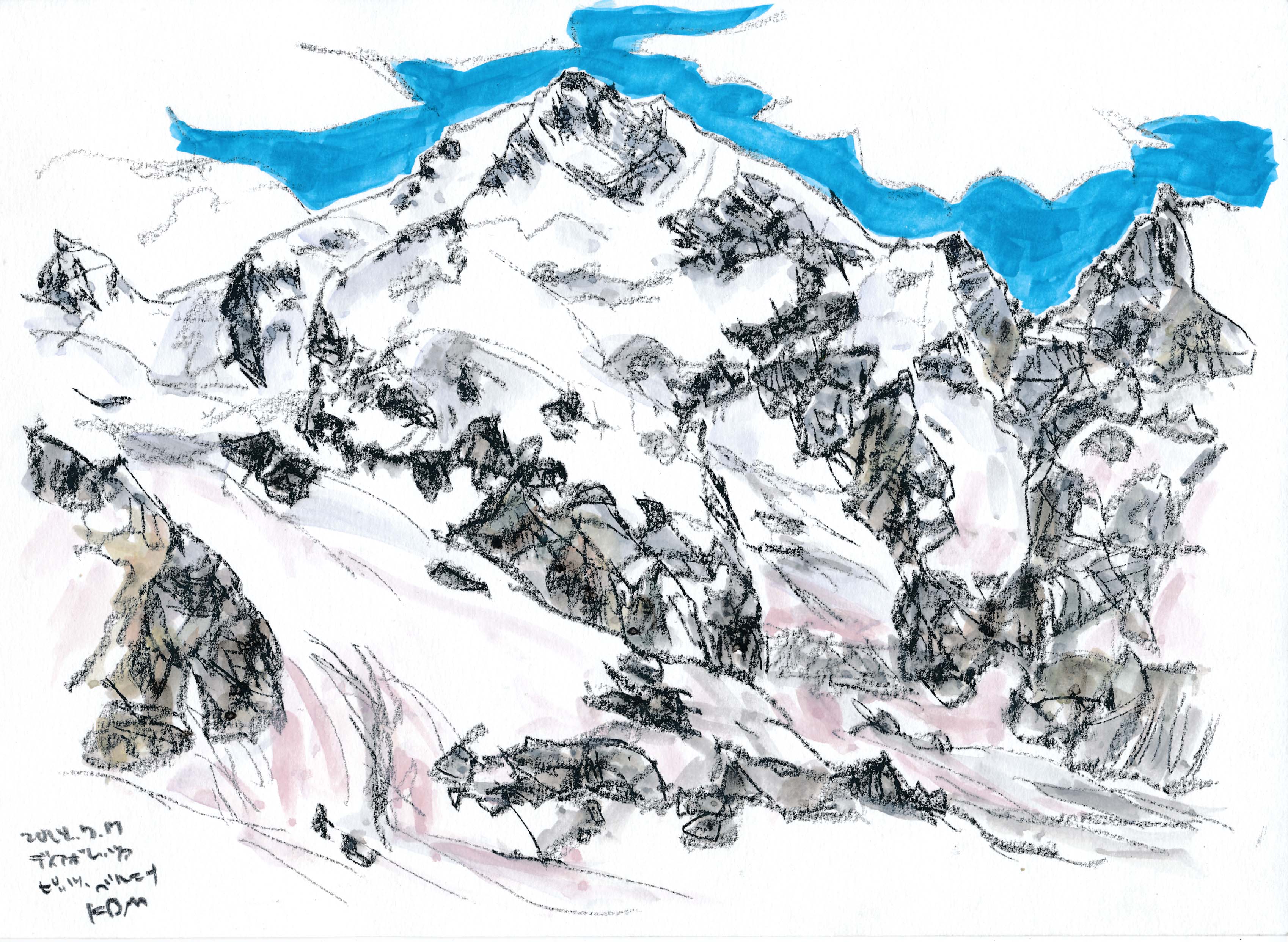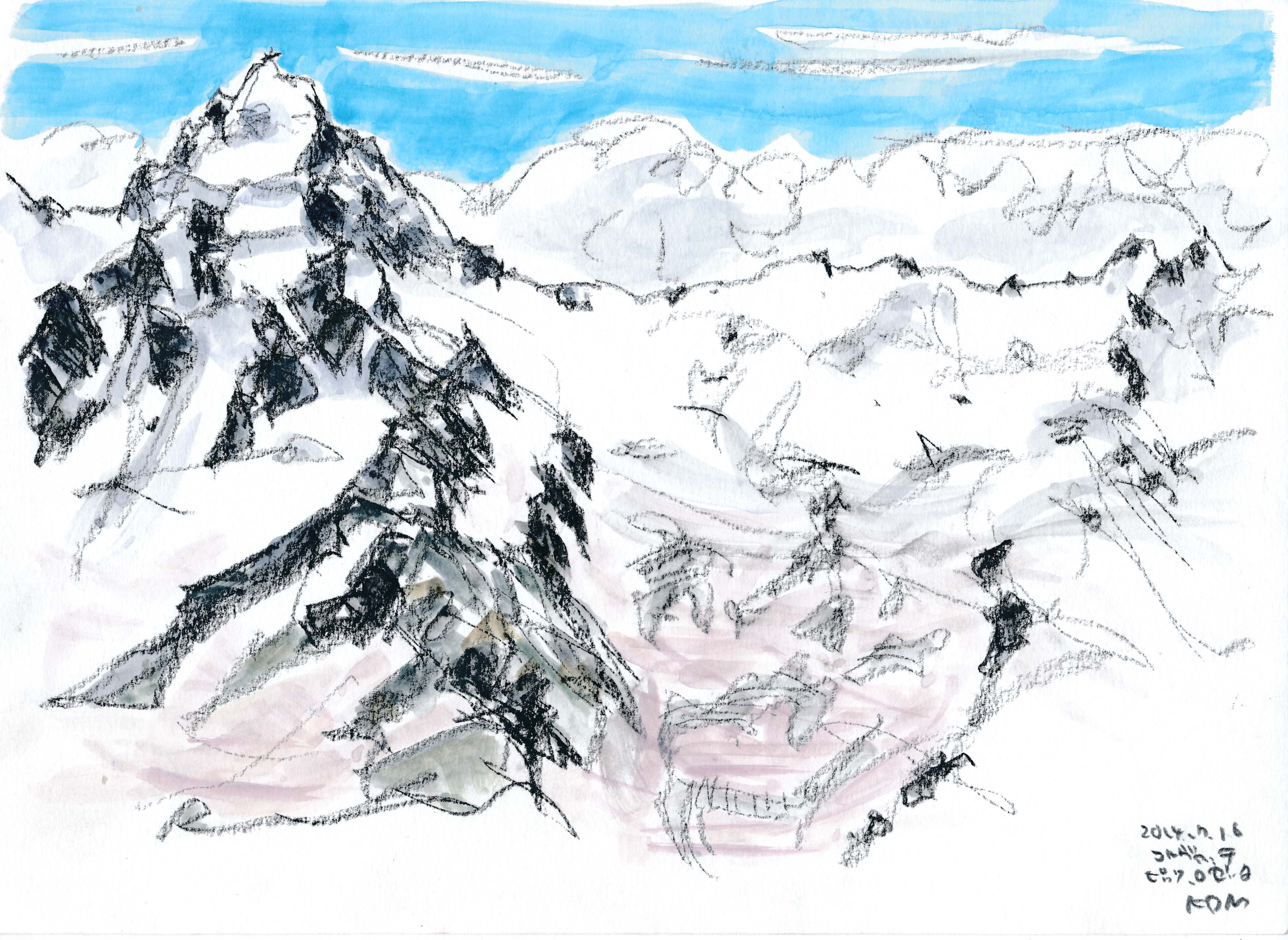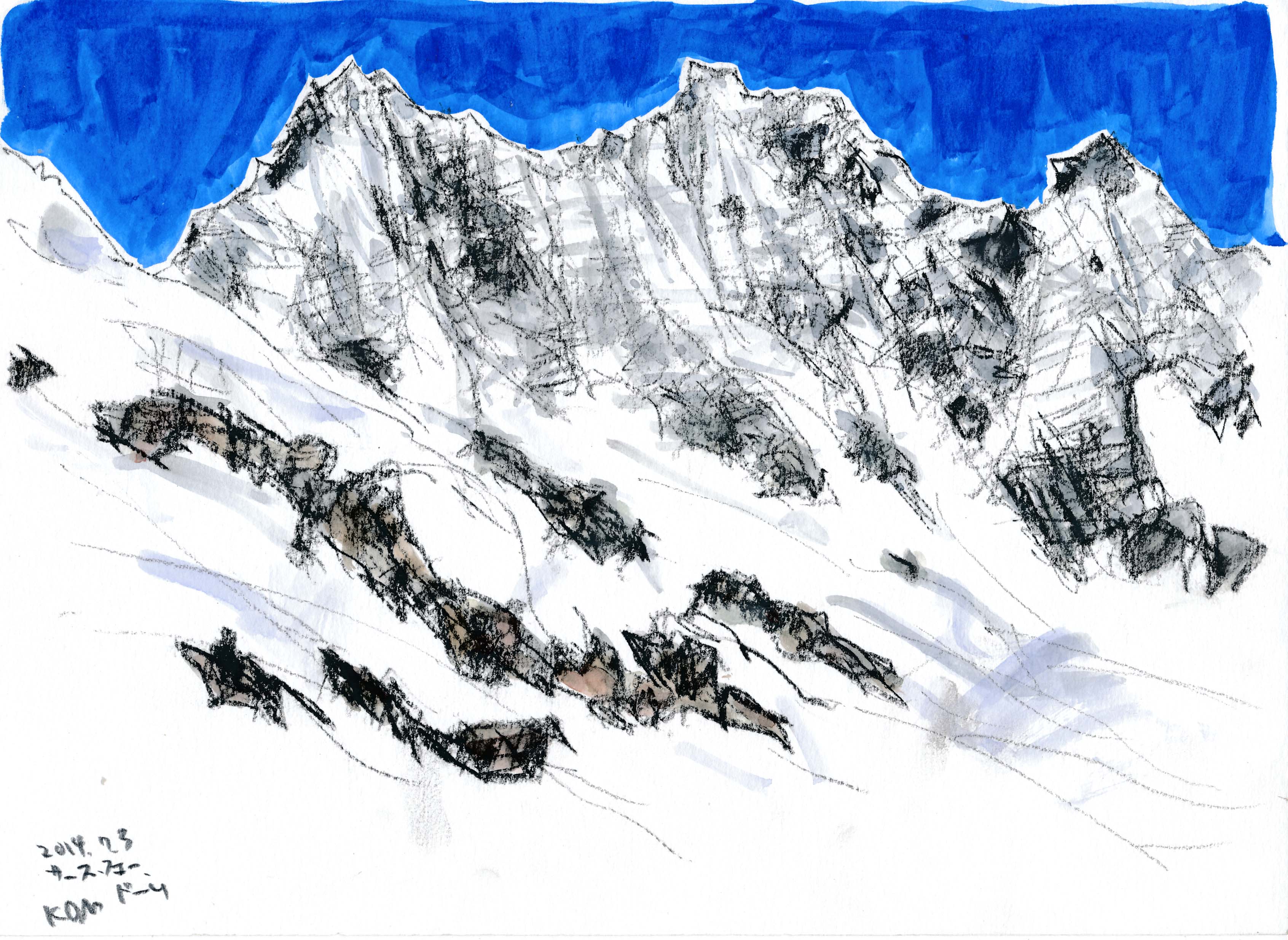 <ピッツ・ネイルのベルニナ・アルプス コンテ鉛筆A4>
