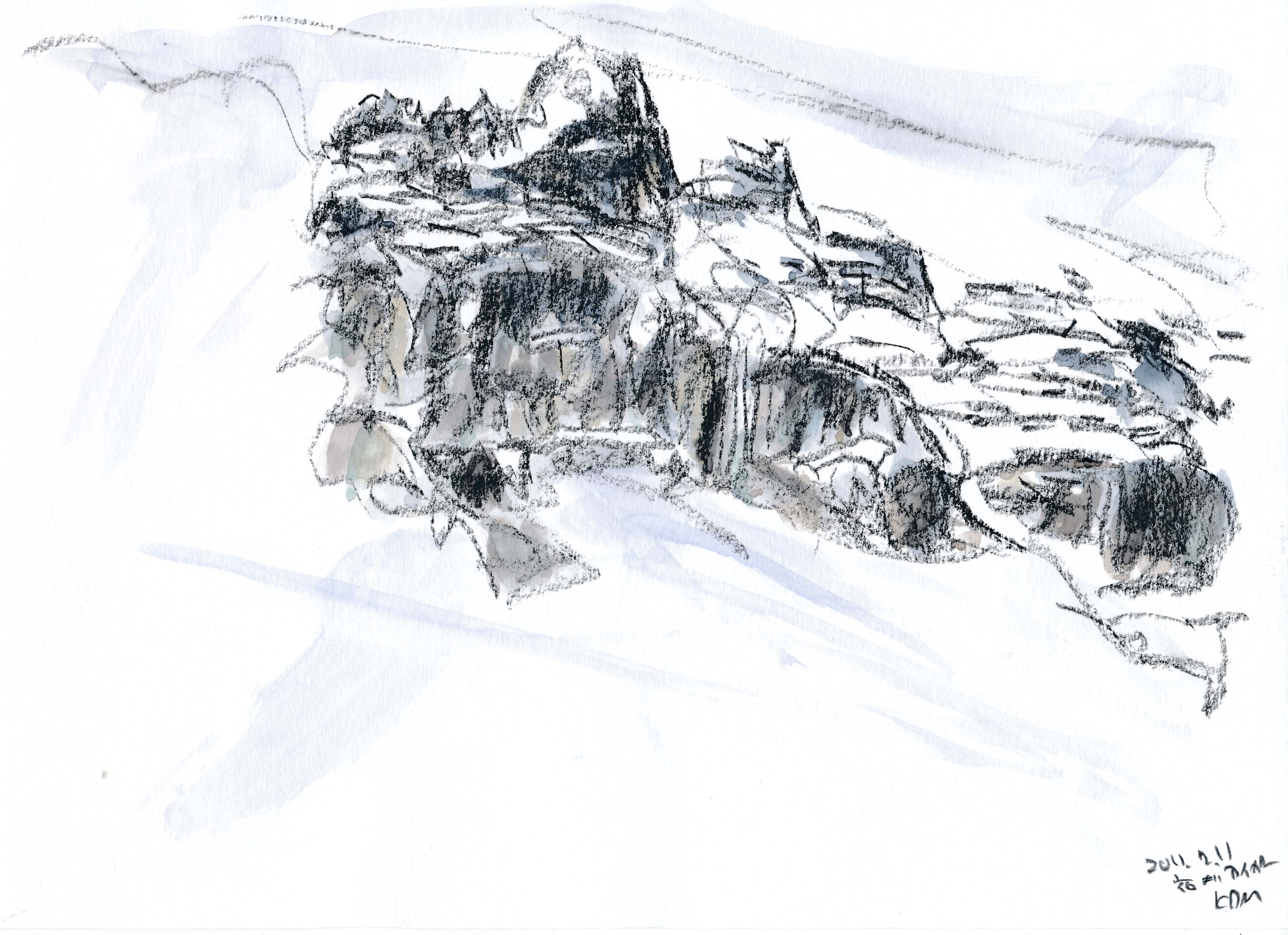 <雨に霞むアイガ-① コンテ鉛筆A4>