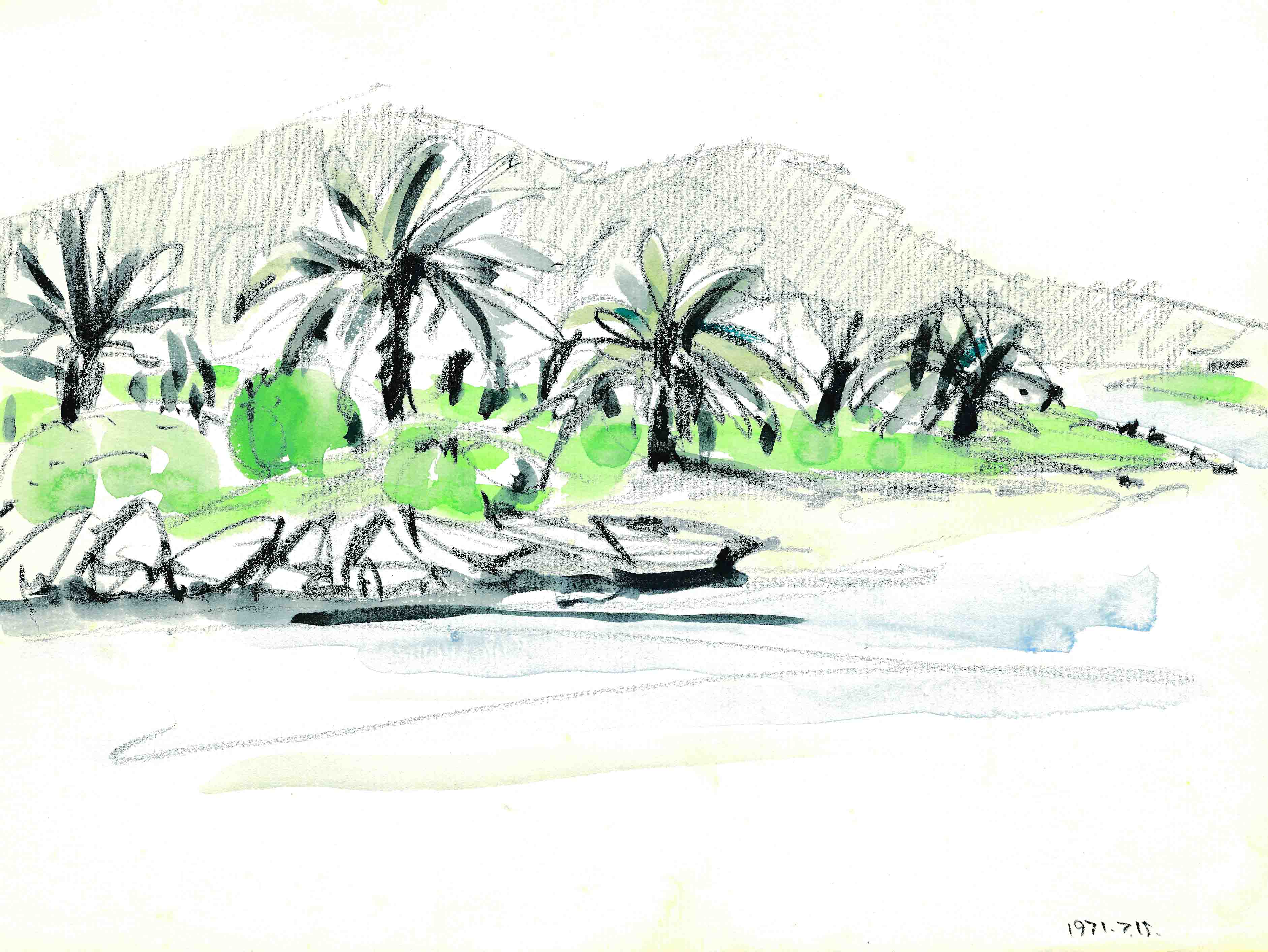 44年前のスケッチ原画をスキャンしました。紙が劣化して黄ばんでいましたので