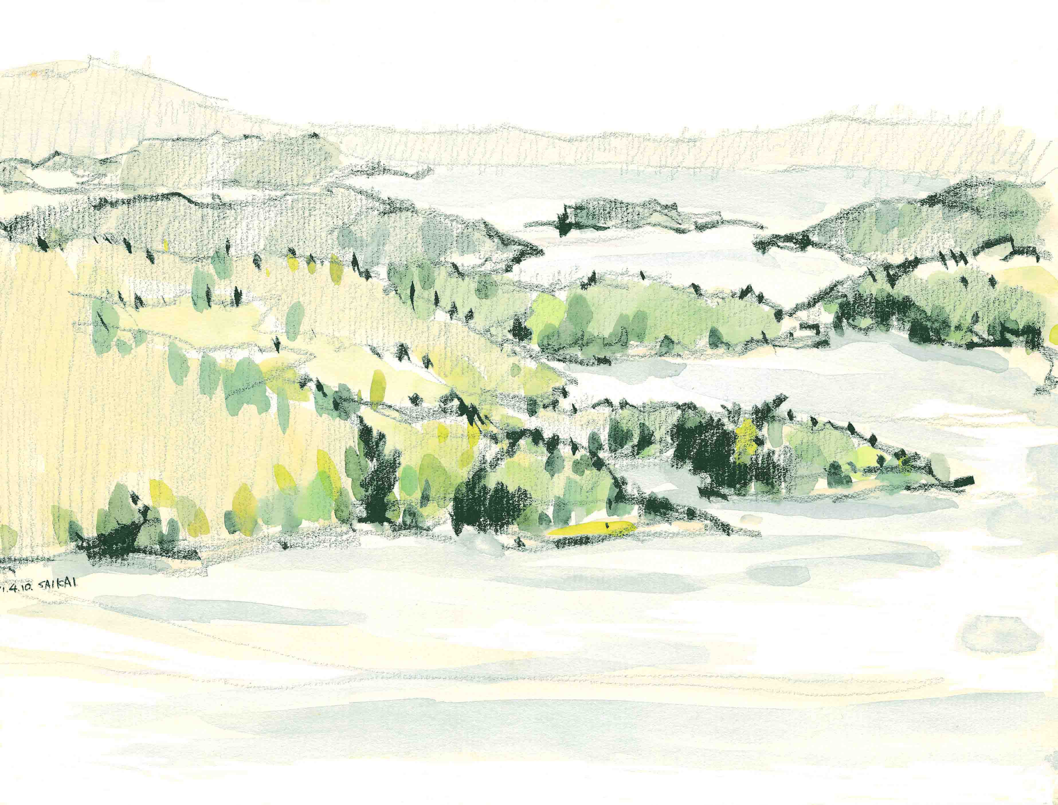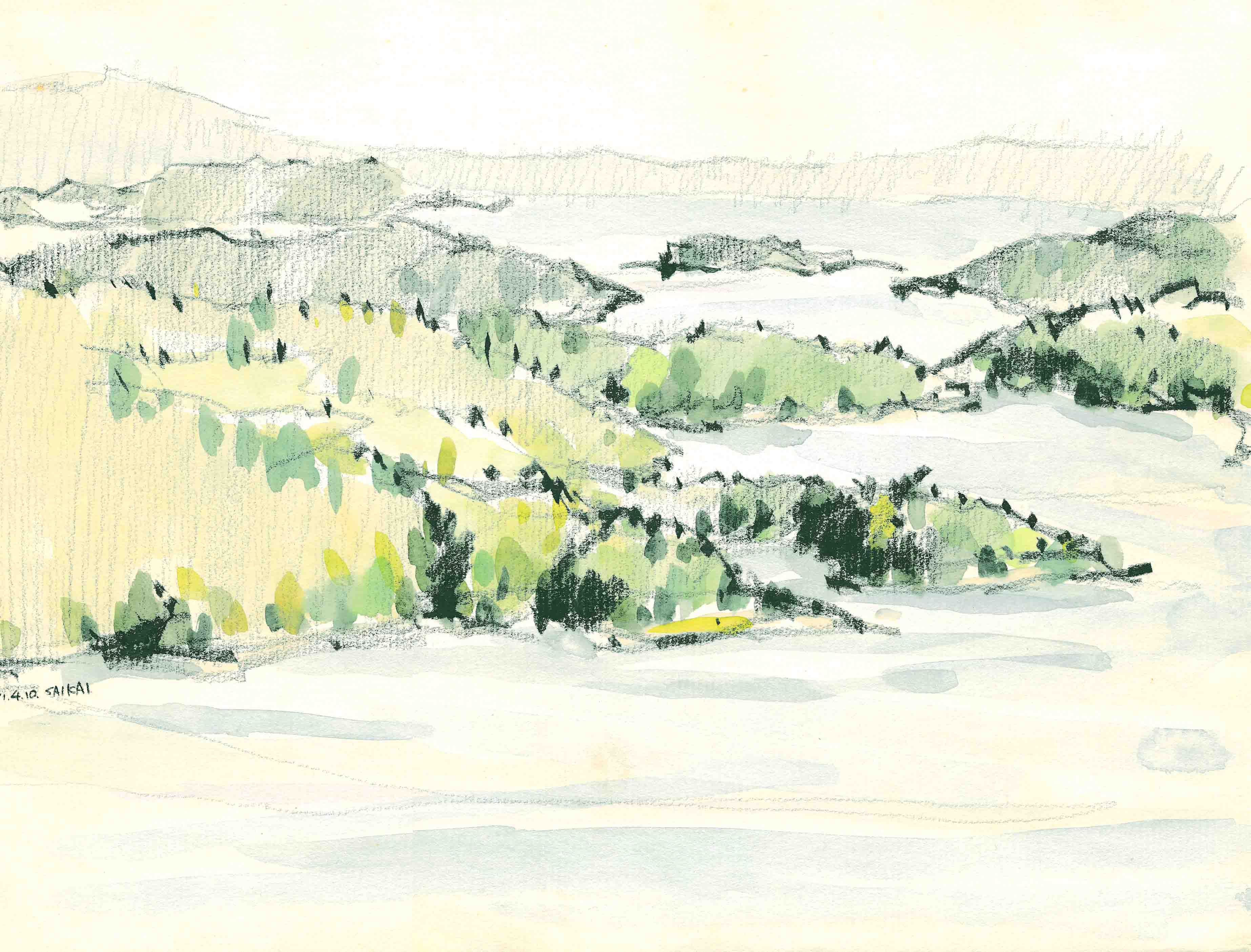 その時の佐世保・西海国立公園での九十九島のスケッチです。