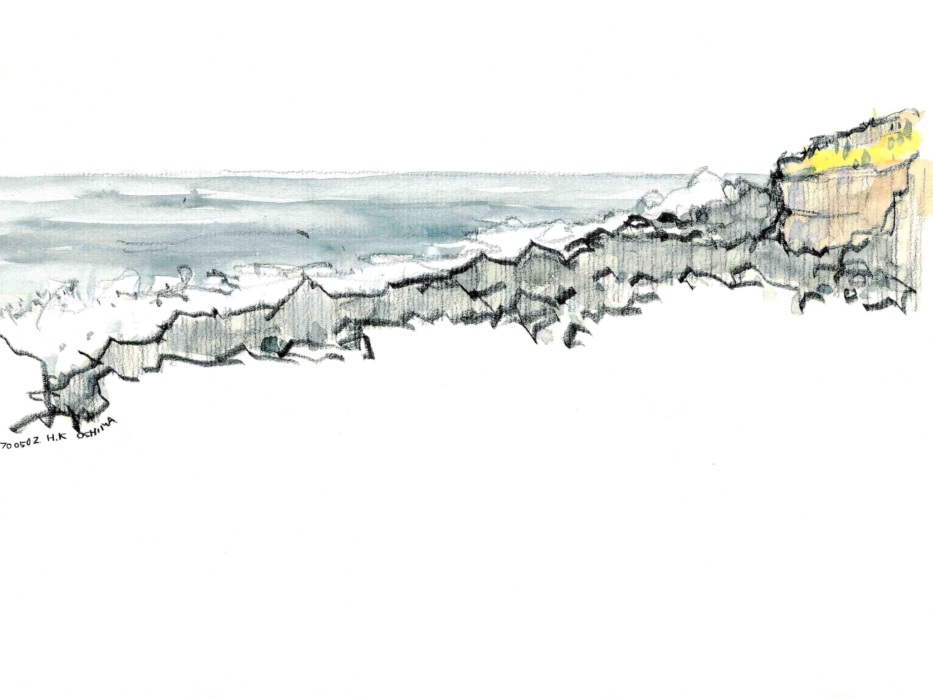 鬼の洗濯板と呼ばれる青島を散策しスケッチしました。
