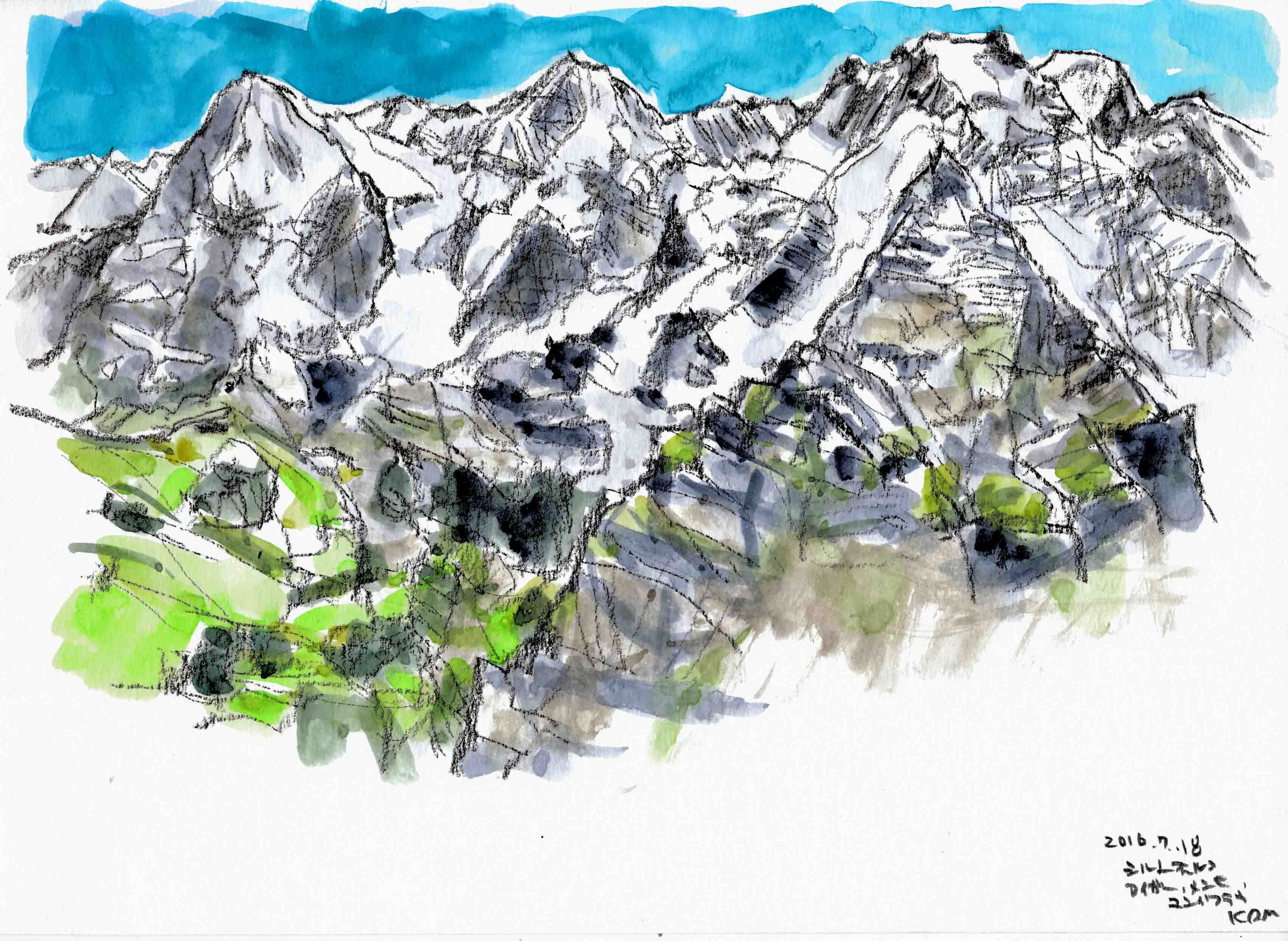 <ユングフラウヨッホのユングフラウ コンテ鉛筆A4>パノラマ③