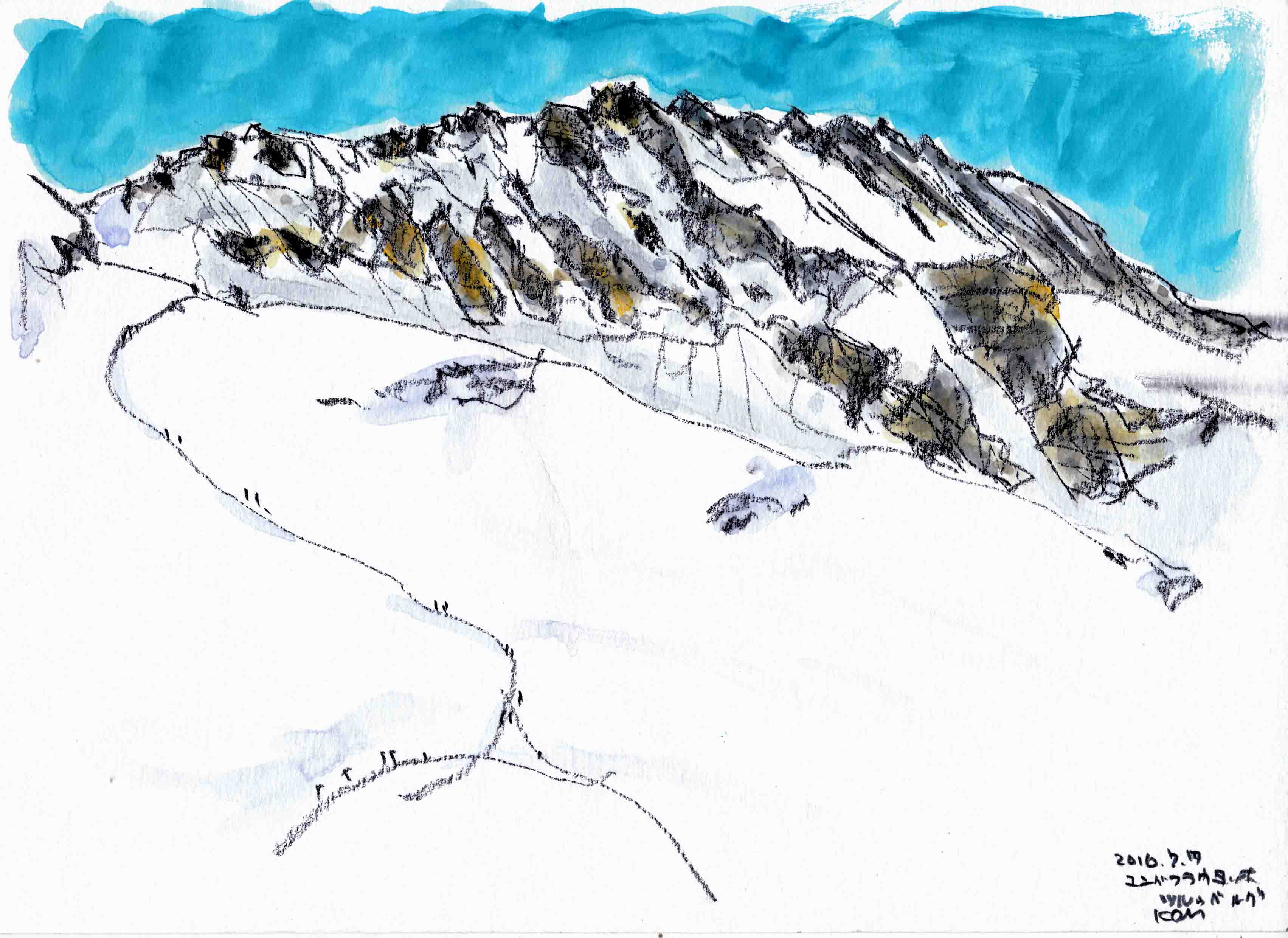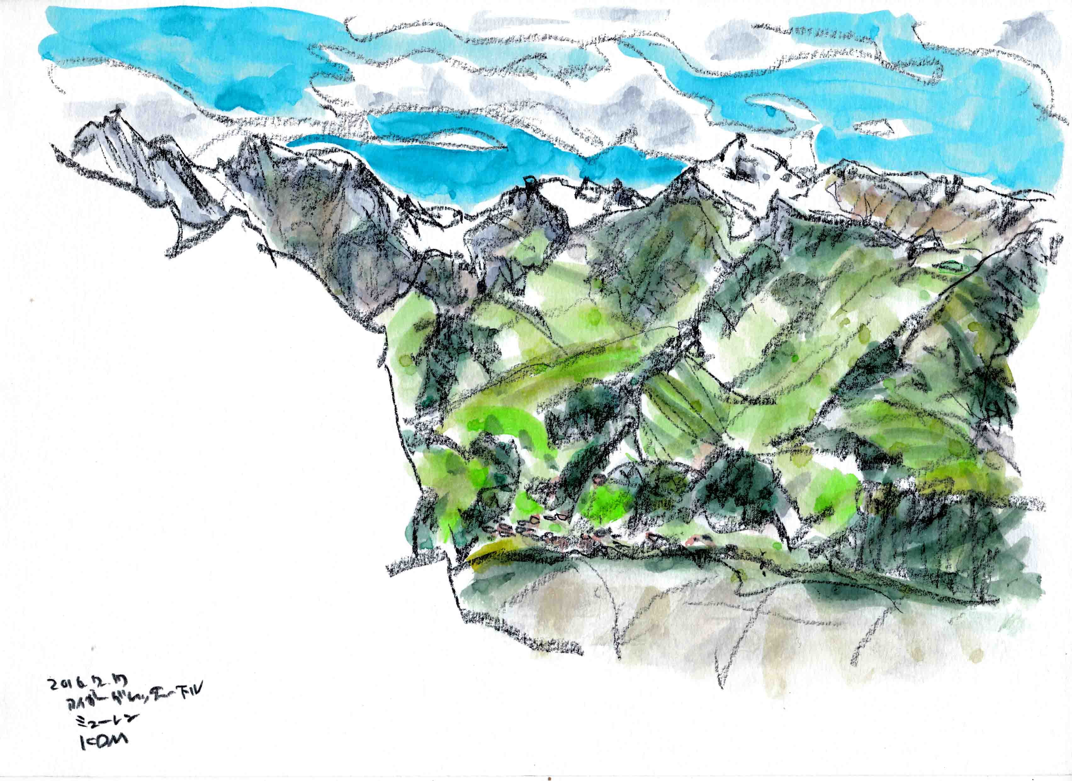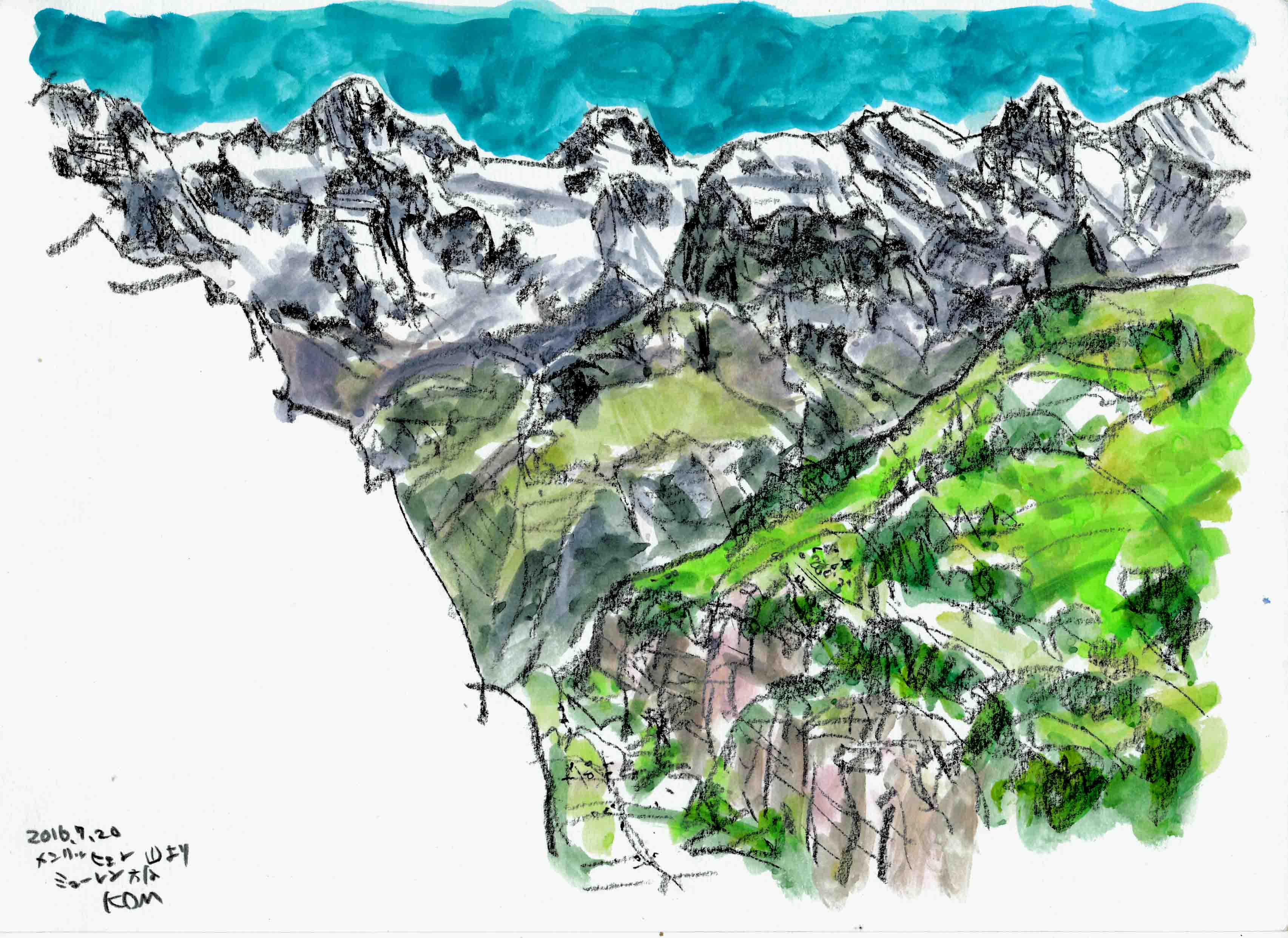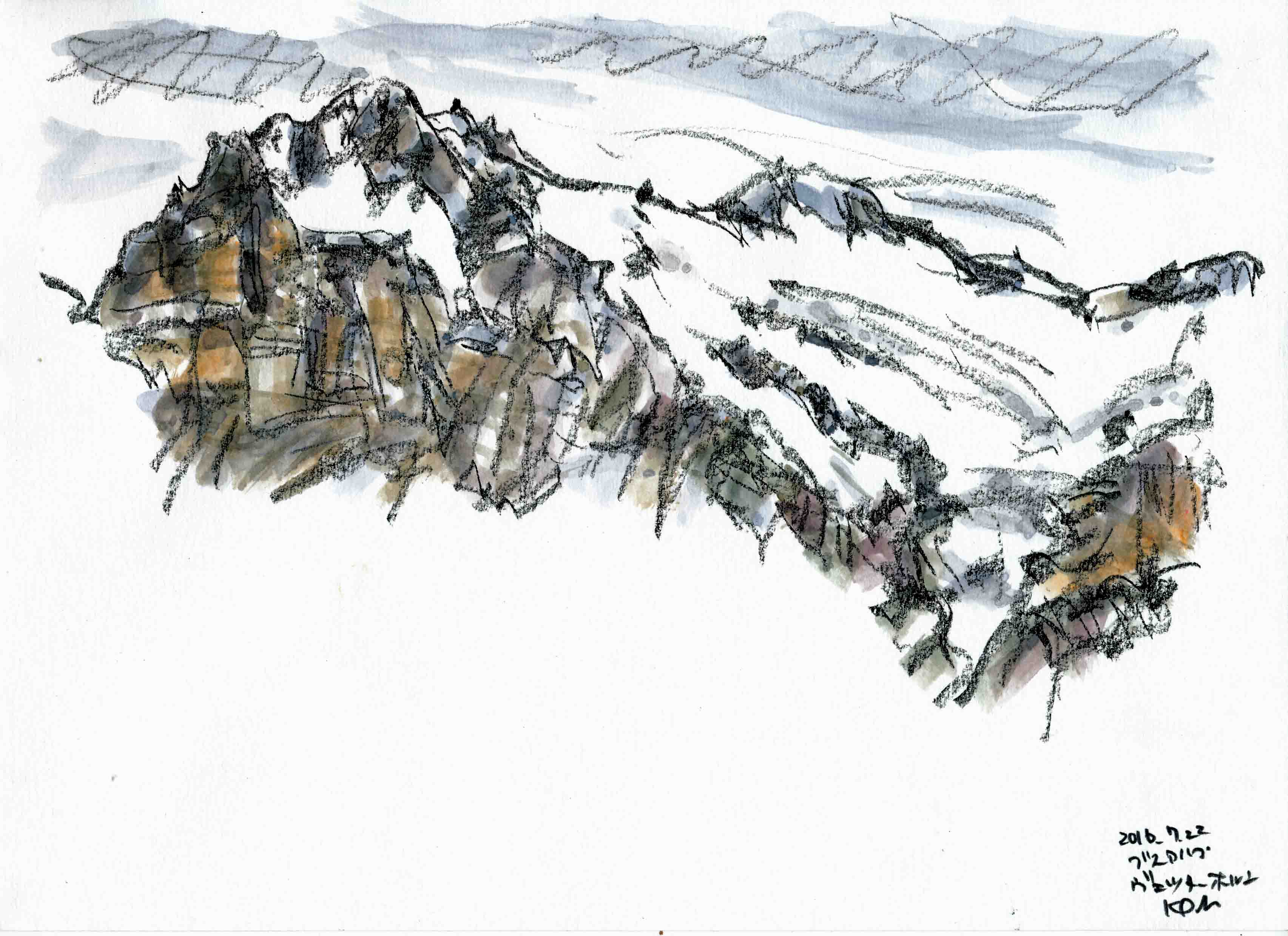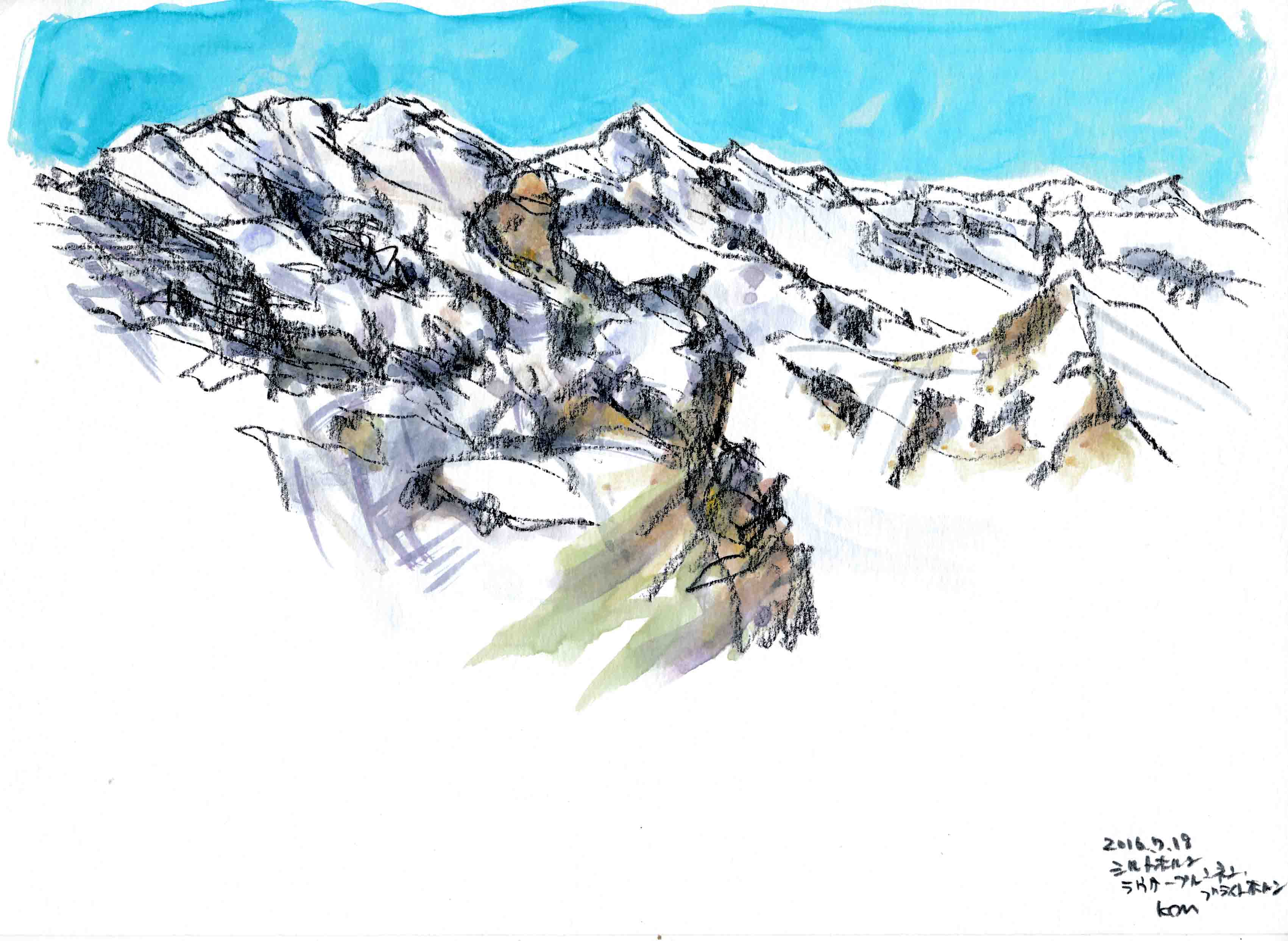 <ユングフラウヨッホのツルゥベルグ コンテ鉛筆A4>パノラマ②