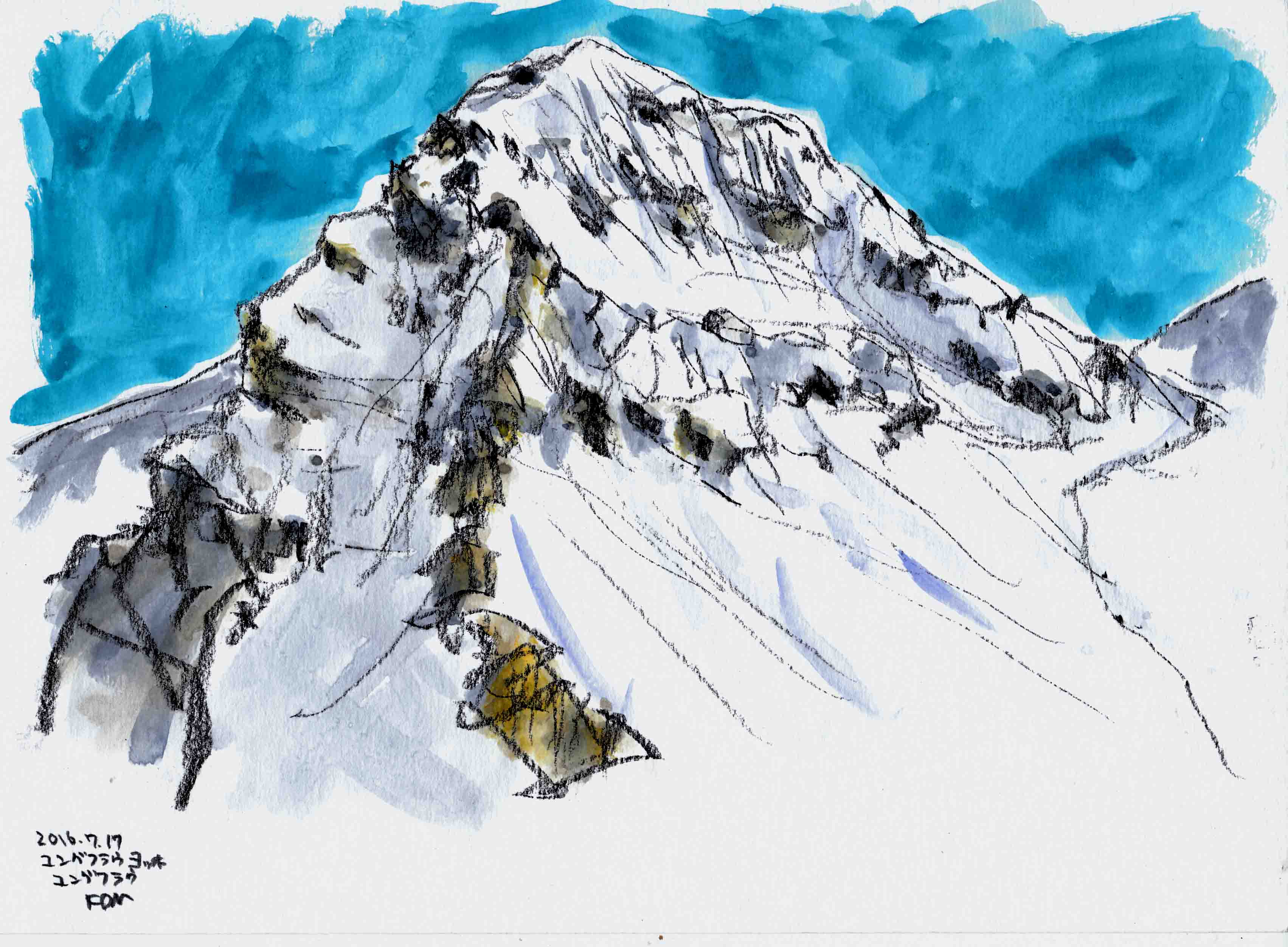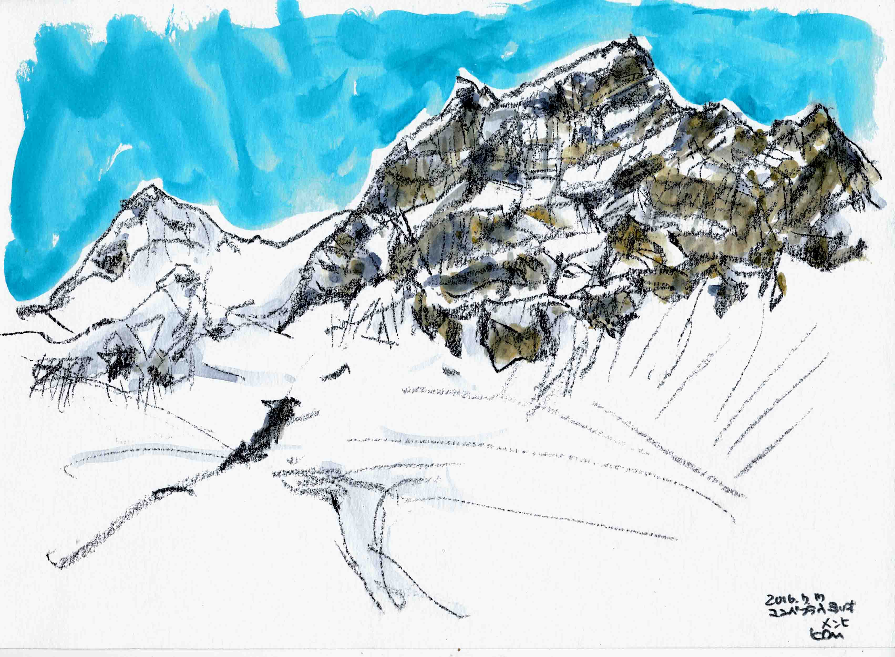 <ユングフラウヨッホのメンヒ コンテ鉛筆A4>②