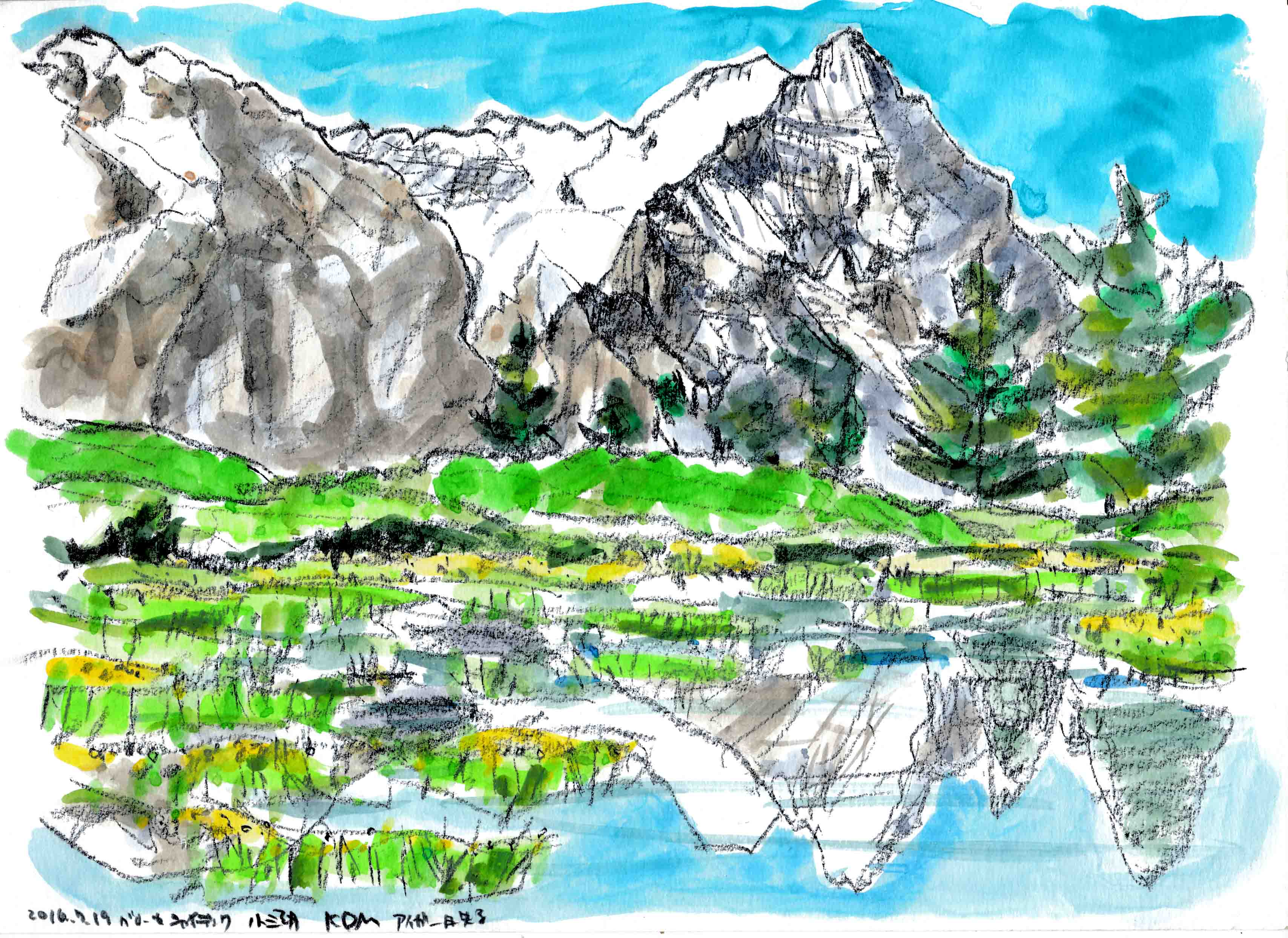 ■湖に映る「逆さマッタ-モルン」が有名ですが、アイガ-にも「逆さアイガ-」が在ることを知りました。今年は3ヵ所の「逆さアイガ-」を描く事に挑戦します。ワクワクです。