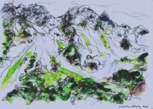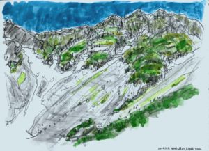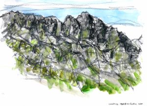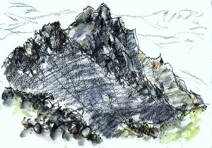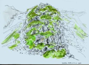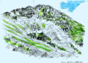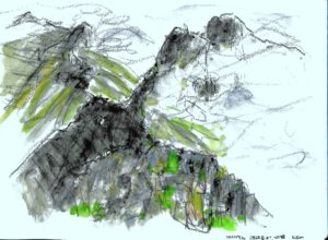 ■今回は、山でスケッチを描いていると、4人の人から声掛けられました。ホ-ムペ-ジ紹介の名刺を渡しながら、スイスや日本アルプスでのスケッチ山行のお話をして、大変楽しかったです。 もし、頂上でスケッチしていましたら、遠慮せず に話しかけて下さい。